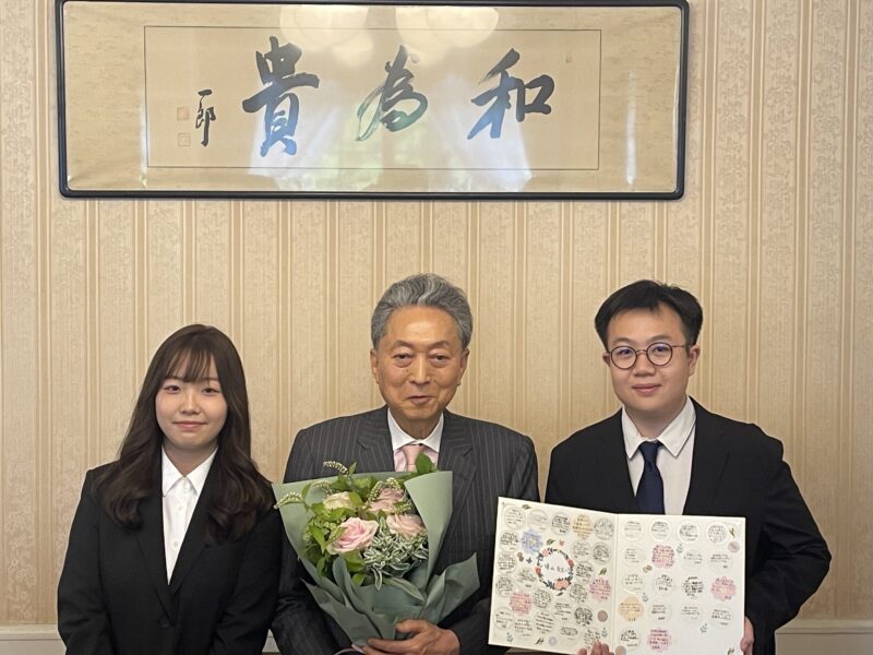 2025年鳩山会館 ニュース 2025.05.302026.01.26 2025年5月28日 鳩山開館見学 5月、文京区の鳩山会館を見学しました。学校から歩いて訪問し、見学後は鳩山由紀夫先生と交流。学生からの質問も多く、また学生1人1人と記念撮影もしていただきました。