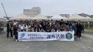 2025年11月14日 課外活動 11月、新木場で晴天の下、屋外バーベキューを実施しました。お肉もたっぷり味わい、食後のビンゴゲームではたくさんの学生が豪華景品をGET!大いに盛り上がりました。